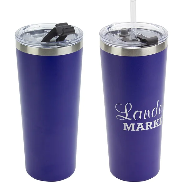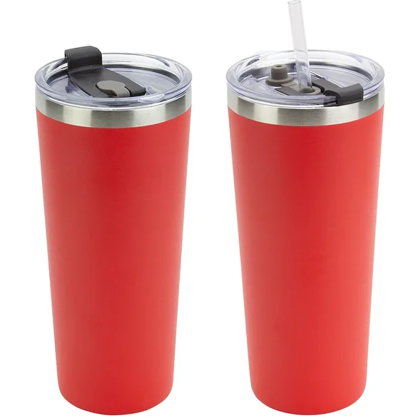 Crafted from durable 18/8 powder-coated stainless steel, this 20 oz. tumbler features double-wall vacuum insulation that helps keep beverages hot or cold for up to 8 hours. The clear plastic lid with straw opening and included reusable straw allow for comfortable, mess-reduced sipping, whether at the office, on the move, or at an event.